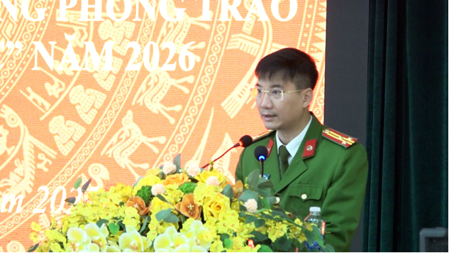 Đồng chí Lê Tuấn Anh, Trưởng Công an phường Đông Quang phát động phong trào thi đua "Vì an ninh Tổ quốc" năm 2026