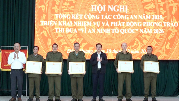 Nhân dịp này, Đại tá Nguyễn Anh Tuấn - Phó Giám đốc Công an tỉnh đã trao thưởng nóng 20 triệu đồng từ nguồn kinh phí phòng, chống tội phạm của Công an tỉnh Thanh Hoá và trao danh hiệu “Đơn vị Quyết thắng” cho Công an phường Đông Quang; trao Giấy khen cho 1 tập thể và 11 cá nhân có thành tích xuất sắc trong công tác bảo đảm ANTT và xây dựng phong trào toàn dân bảo vệ an ninh Tổ quốc năm 2025. 5 tập thể và 8 cá nhân được đề nghị Chủ tịch UBND phường tặng giấy khen có thành tích xuất sắc trong phong trào đảm bảo ANTT trên địa bàn phường Đông Quang năm 2025./.