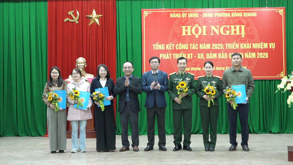 Nhân dịp này phường đã trao quyết định về việc tiếp nhận và bổ nhiệm chức vụ Phó Giám đốc Trung tâm Cung ứng dịch vụ công phường Đông Quang cho đồng chí Lê Thị Hải; Giao quyền phụ trách điều hành hoạt động Văn phòng Hội đồng nhân dân và Ủy ban nhân dân phường Đông Quang cho đồng chí Hà Việt Bắc và tiếp nhận 2 viên chức về công tác tại Trung tâm cung ứng dịch vụ công phường Đông Quang. Trao giấy khen thưởng cho tập thể và cá nhân có thành tích hoàn thành suất xắc nhiệm vụ năm 2025.