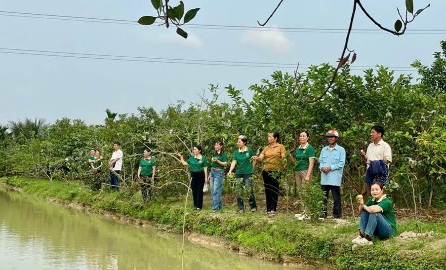 Hội Nông dân phường Đông Quang tham quan mô hình vườn mẫu, chú trọng thu gom bao bì thuốc BVTV