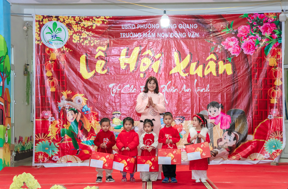 Trong không khí rộn ràng chào đón Tết Nguyên đán, Trường Mầm non Đông Văn đã tổ chức Lễ hội Xuân với chủ đề “Tết cho em – Xuân an lành”, mang đến cho trẻ mầm non một không gian trải nghiệm vui tươi, ấm áp và giàu ý nghĩa. Chương trình không chỉ giúp các trẻ cảm nhận hương vị Tết cổ truyền mà còn góp phần giáo dục kỹ năng sống, nuôi dưỡng tình yêu quê hương, gia đình ngay từ những năm tháng đầu đời.
