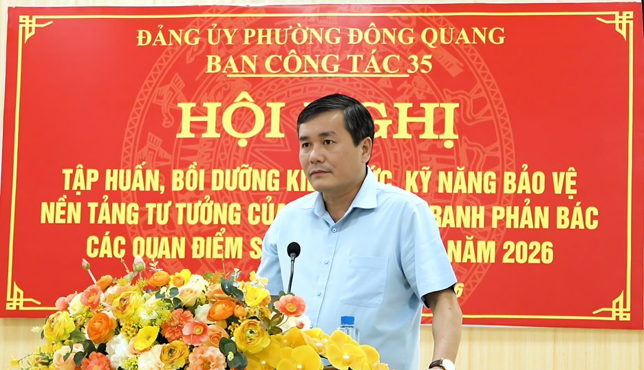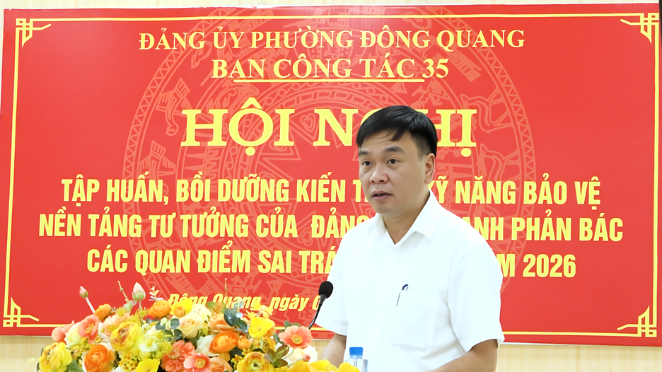Phường Đông Quang tổ chức hội nghị tập huấn bồi dưỡng kiến thức, kỹ năng bảo vệ nền tảng tư tưởng của Đảng, đấu tranh phản bác các quan điểm sai trái, thù địch năm 2026.